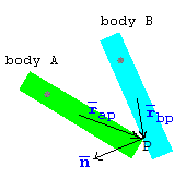 (va2 + ωa2 × rap − vb2 − ωb2 × rbp) · n =